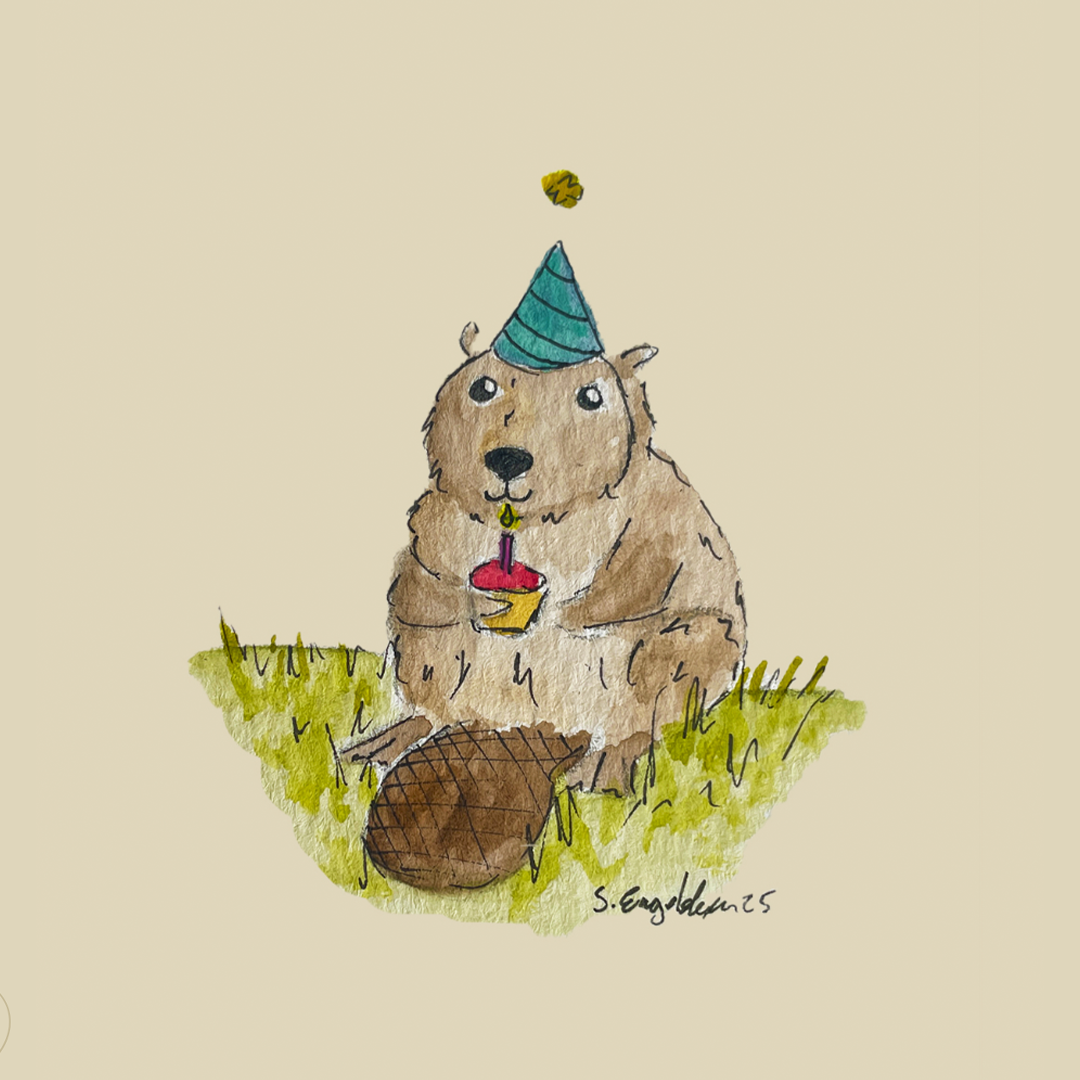Bever - Handgemaakte verjaardagskaart met origineel kunstwerk